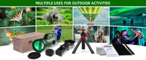 - 【HIGH CONTRAST AND RESOLUTION IMAGES】The Monocular telescope equipped with the B A K 4 prism and fully muti-coated lens, The larger the objective lens, the more light that enters to the monocular, and the brighter the image. Clear image without black bars,it makes Super Clear and Sharp Images.